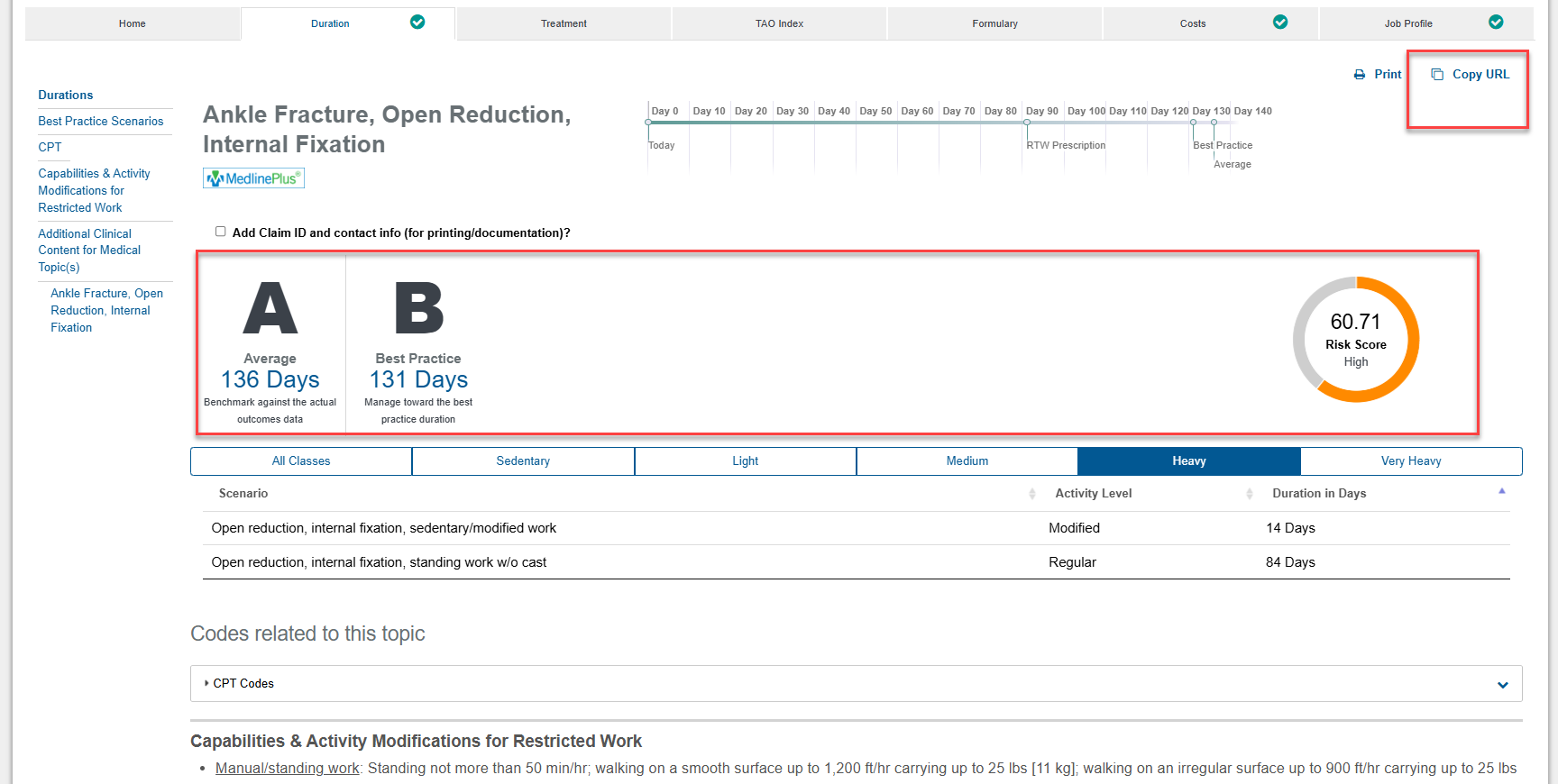 * Best Practice Duration in Day: is the recommended number of days for optimal recovery or work absence for a specific medical condition or procedure, based on evidence and typical outcomes.