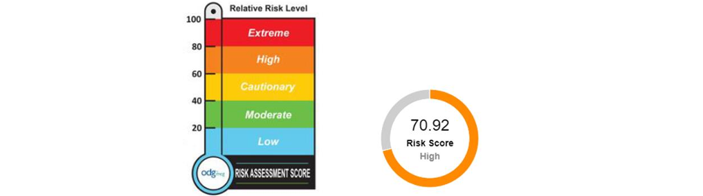 * The ODG system itself displays a round gauge chart and a thermometer chart for its risk score ranges, if you need an additional visual by going to the ODG site.